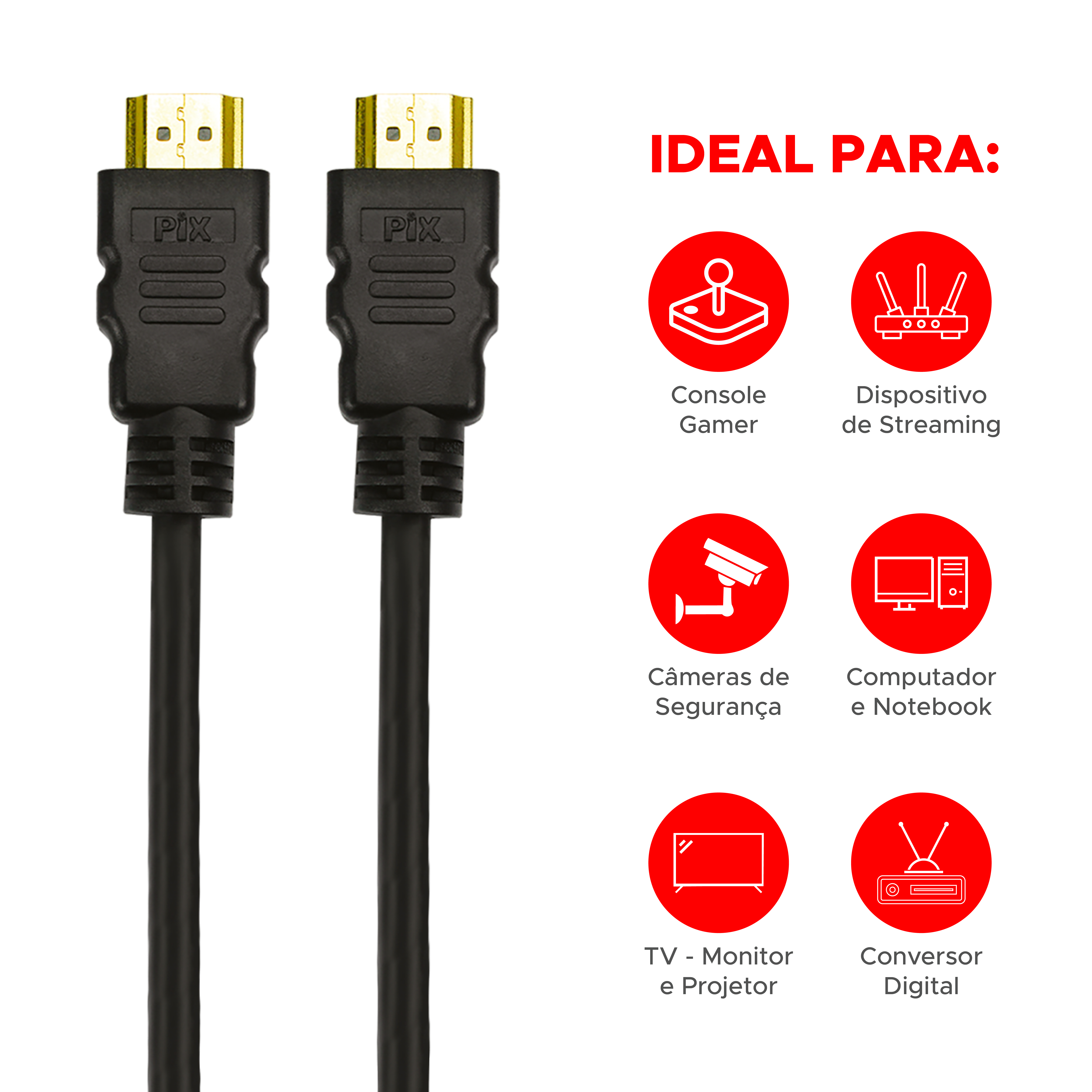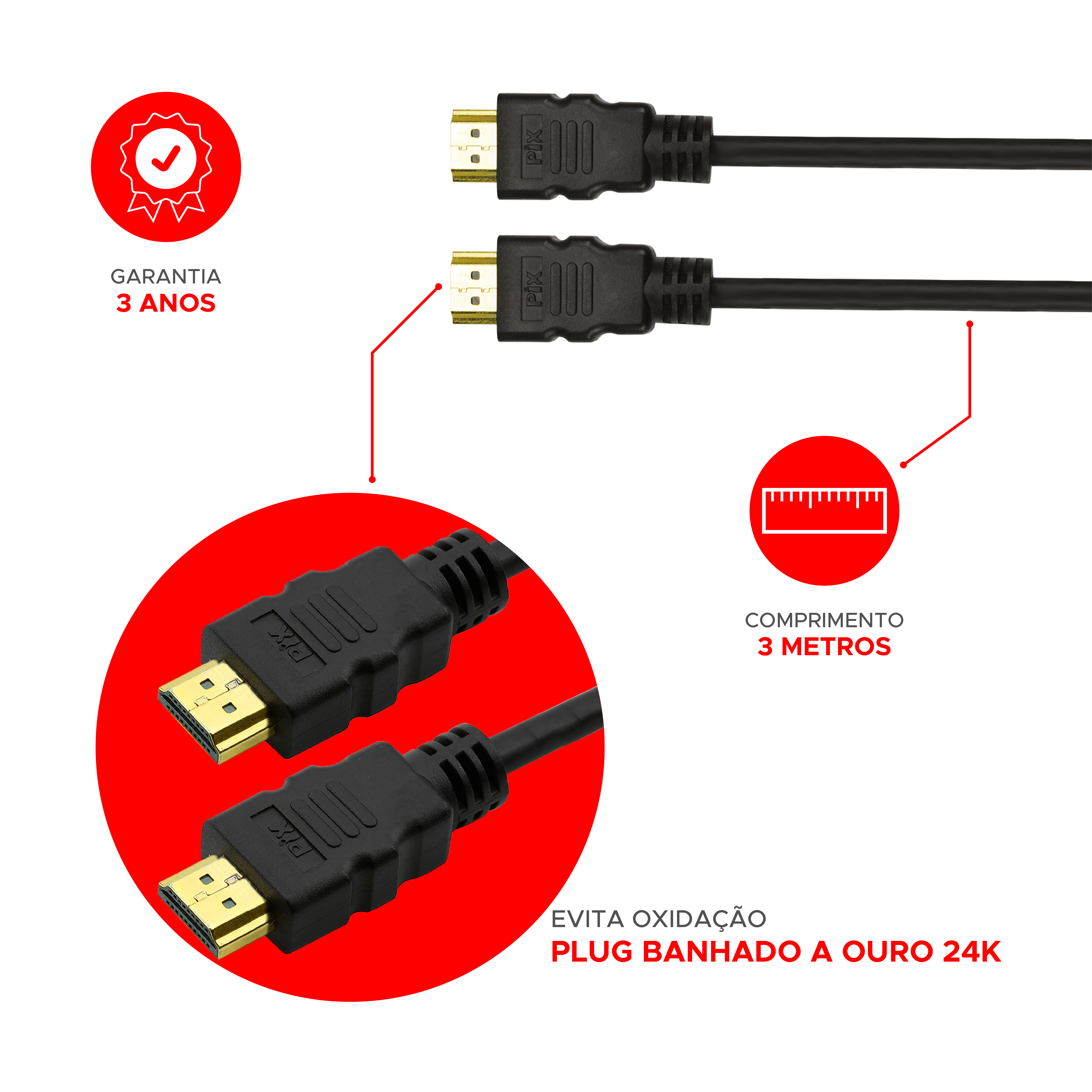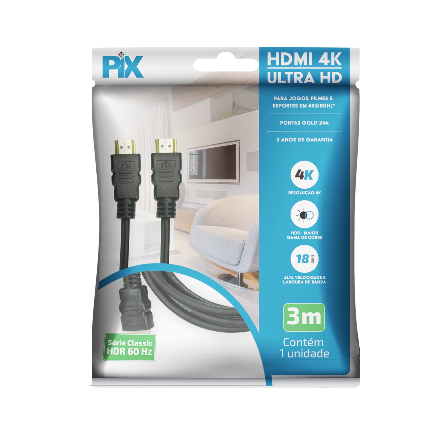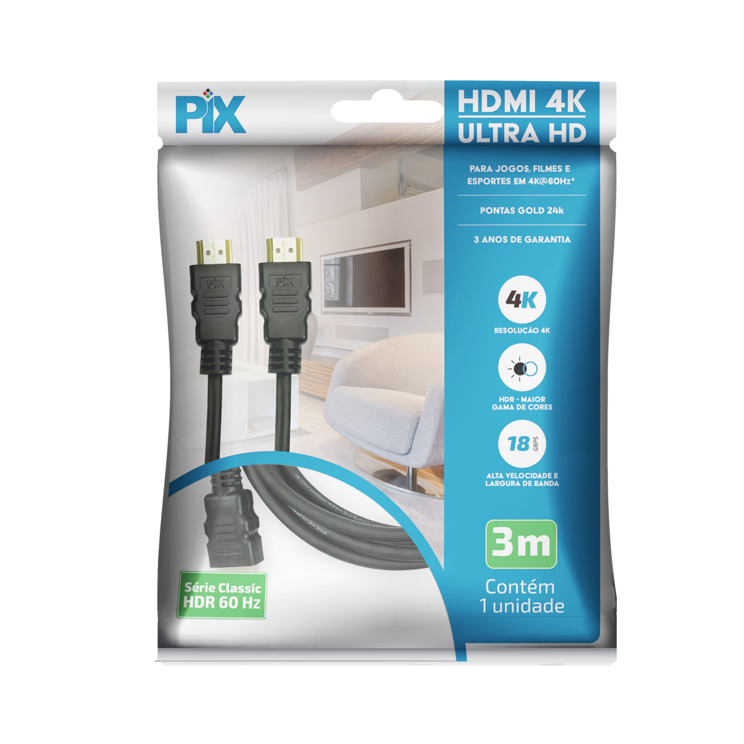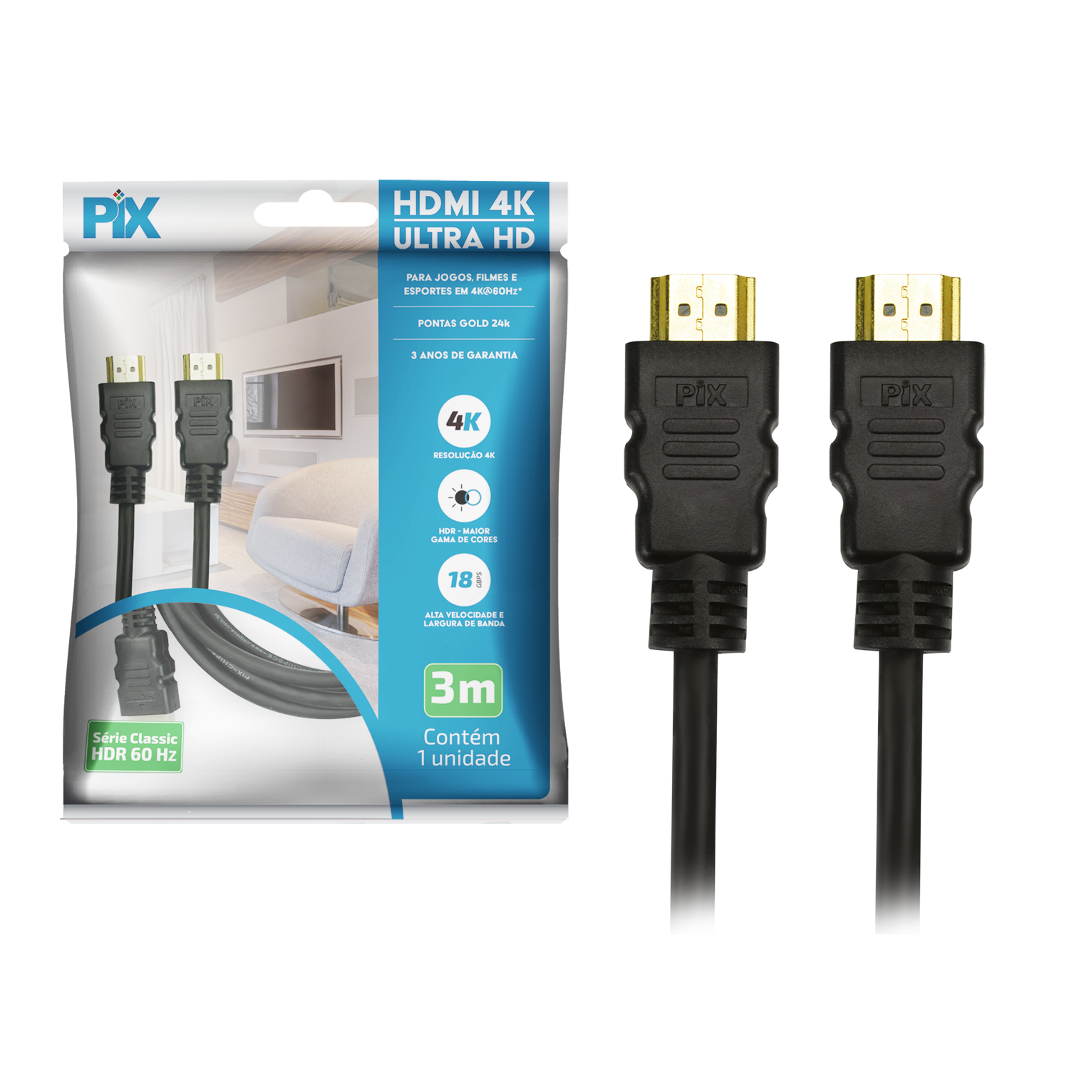 Uma linha de cabos HDMI de qualidade superior, com pontas gold que previnem a oxidação. Disponível em diversas opções de metragem com total conformidade ao padrão HDMI 2.0b. 4K@50/60Hz 2160p: até 4X mais detalhes que 1080p Dual view: 2 fluxos de vídeo simultâneos Compatível com proporção de cinema 21:9 Transmissão de 4 canais de áudio simultâneos Som imersivo com até 32 canais de áudio Som perfeito: frequência de Áudio até 1536Khz